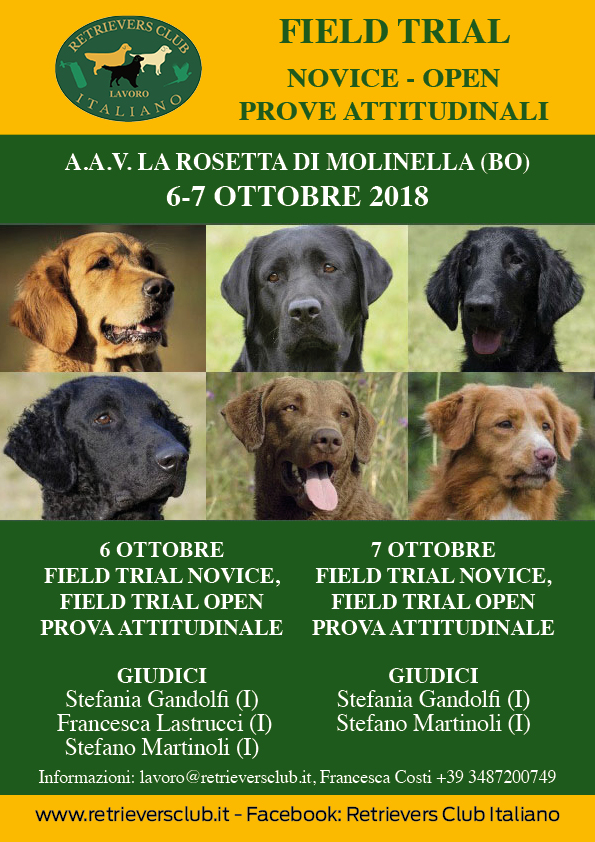 Sabato 6 ottobre: Field Trial Novice, Open e prova attitudinale