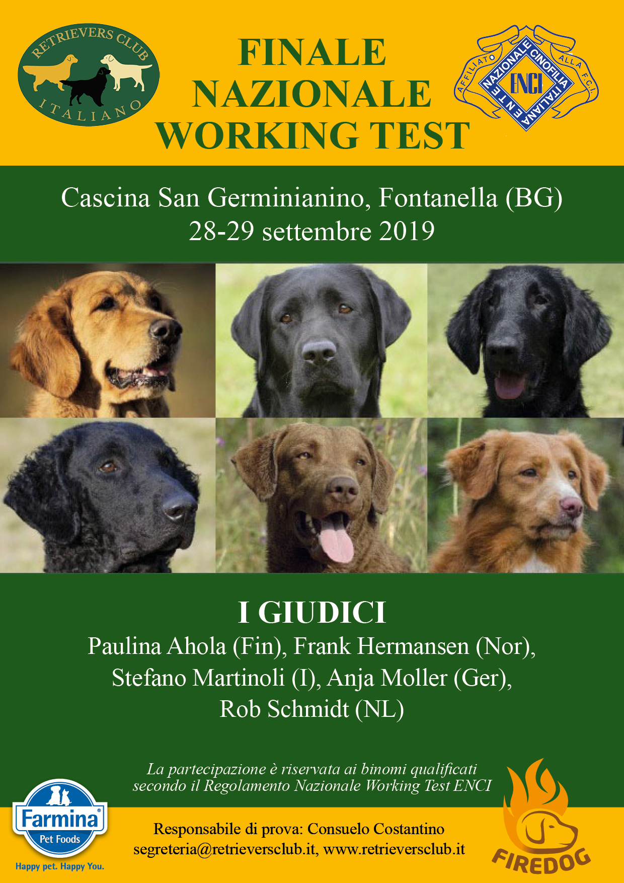 Si richiede cortese prenotazione per la Cena Sociale del Sabato (specificare se menù carne o pesce) e per l’aperitivo di venerdì via email a segreteria@retrieversclub.it e/o via whatsapp a 3487200749.